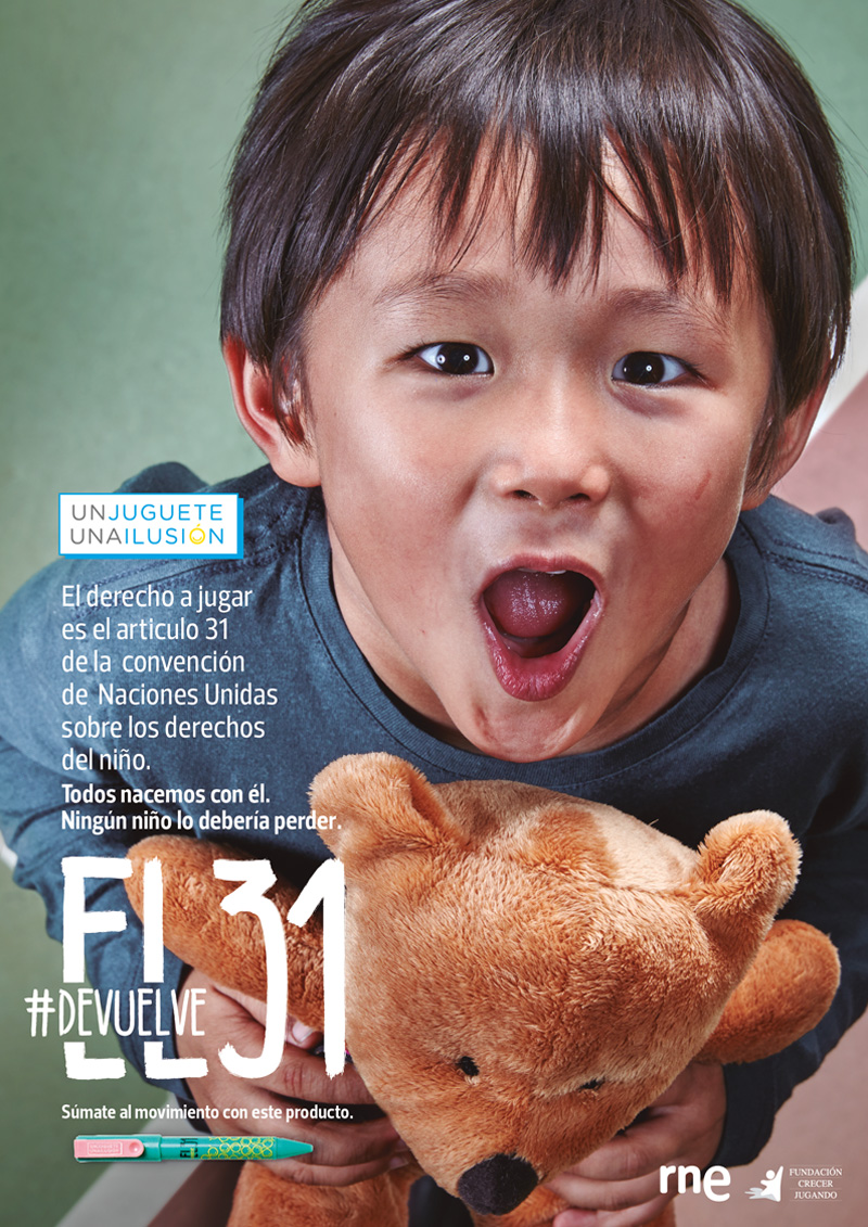 #Devuelveel31 nace como concepto para dar visibilidad al derecho 31 de la Convención de las Naciones Unidas, creando un movimiento social de concienciación a favor de los niños y capaz de pelear por uno de los derechos fundamentales con el que todos nacemos pero que a algunos se lo roban: Jugar.