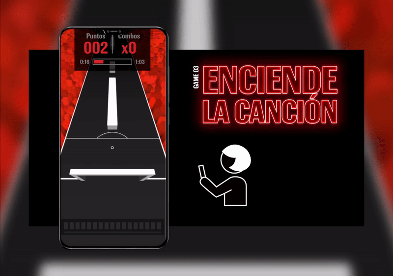 JUEGO 3: ENCIENDE EL PARTIDONo hay equipo sin himno pero ¿Y si para este himno tuvieses que mantener el ritmo bajo control? Sustituimos la letra por la palabra gol y los usuarios tienen que cantar sin fallar ninguna nota. Conseguimos reproducir audio al mismo tiempo que la voz manejaba el juego.