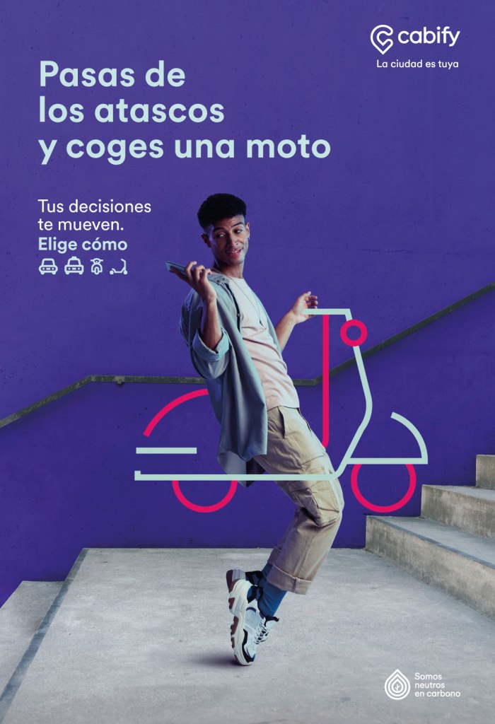 Cabify (compañía de movilidad) necesitaba comunicar la unión de sus servicios, el cambio de tan solo tener coches como medio de transporte a pasar a tener motos y patinetes en una misma aplicación.